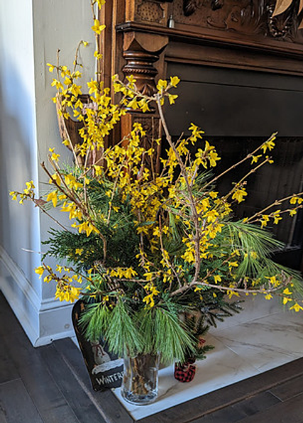 Explore the outside and take long cuttings of flowering shrubs and/or trees. Each year in January or early February I cut stems of forsythia and bring them inside. Their buds are very tiny, however when placed in a long vase filled with room temperature water within a week and a half you will have stems in full bloom. They can be placed in a sunny window or even in a north facing room and they will still bloom. I like to place mine on the hearth in our north facing living room. You can also try this with any flowering bush or tree.