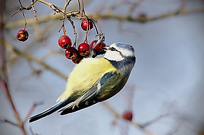 Trees such as Hawthorns, Crabapples, and Hollys with countless berries provide an abundance of food for winter birds.