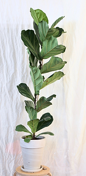 Fiddle Leaf Fig plant that needs to be watered to the right. The leaves are tucked in closely.